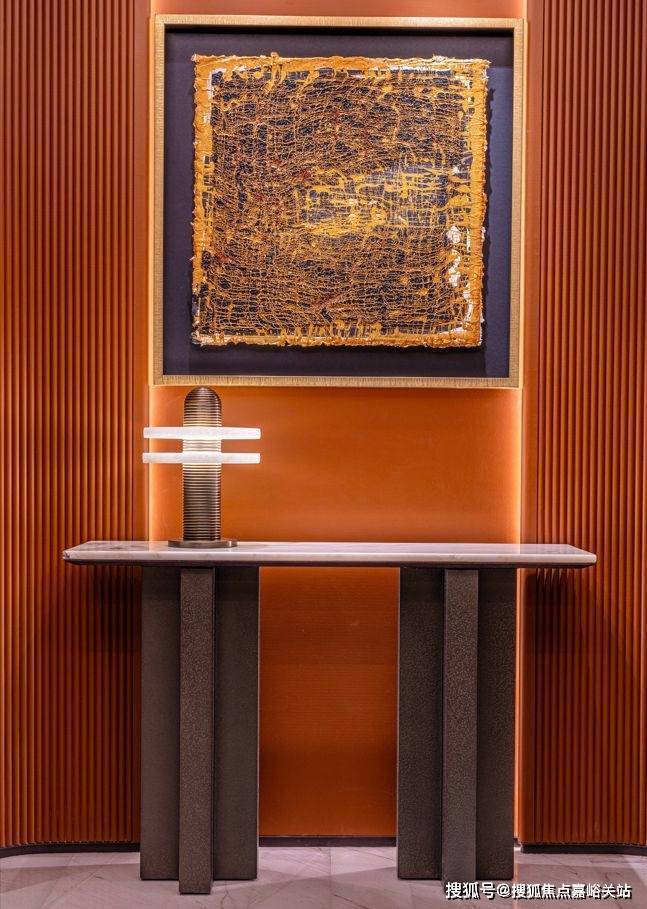例如书厅空间,选用了现代大漆艺术家段一凡以石库门老修筑红砖墙元素为灵感的作品《Stroke--Goldabovered》,让空间集萃了露香园传奇元素与海派内情。